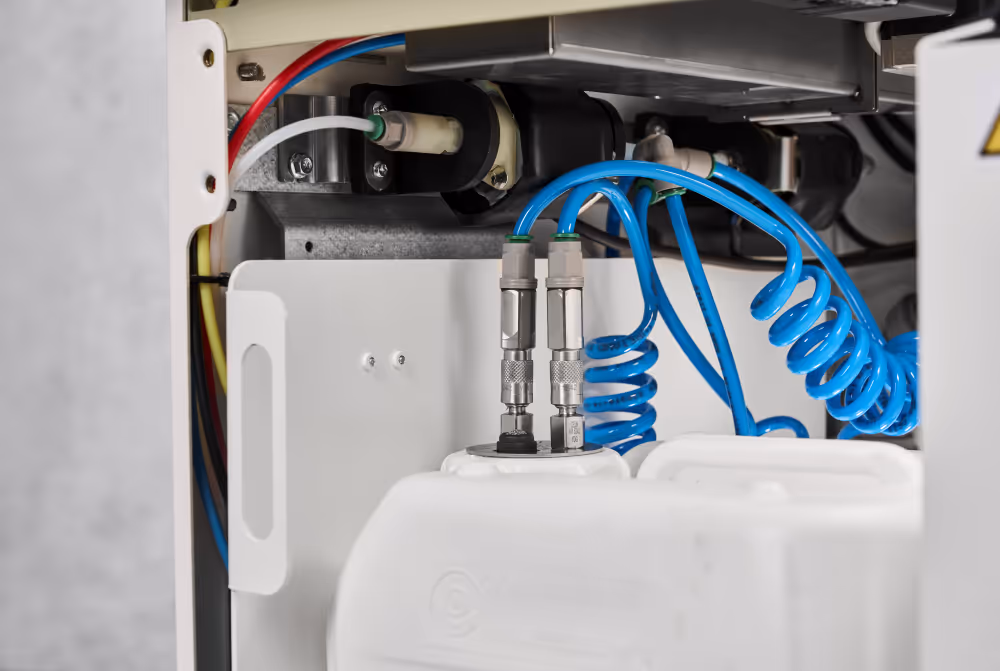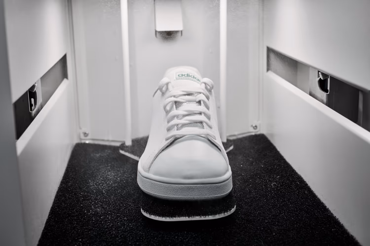 Den banebrydende skobehandling udføres i et specialdesignet vakuumkammer. Med et enkelt tryk på knappen aktiveres en kort, men kompleks proces, hvor seks dysere fordeler skobehandling jævnt over hele skoens overflade.